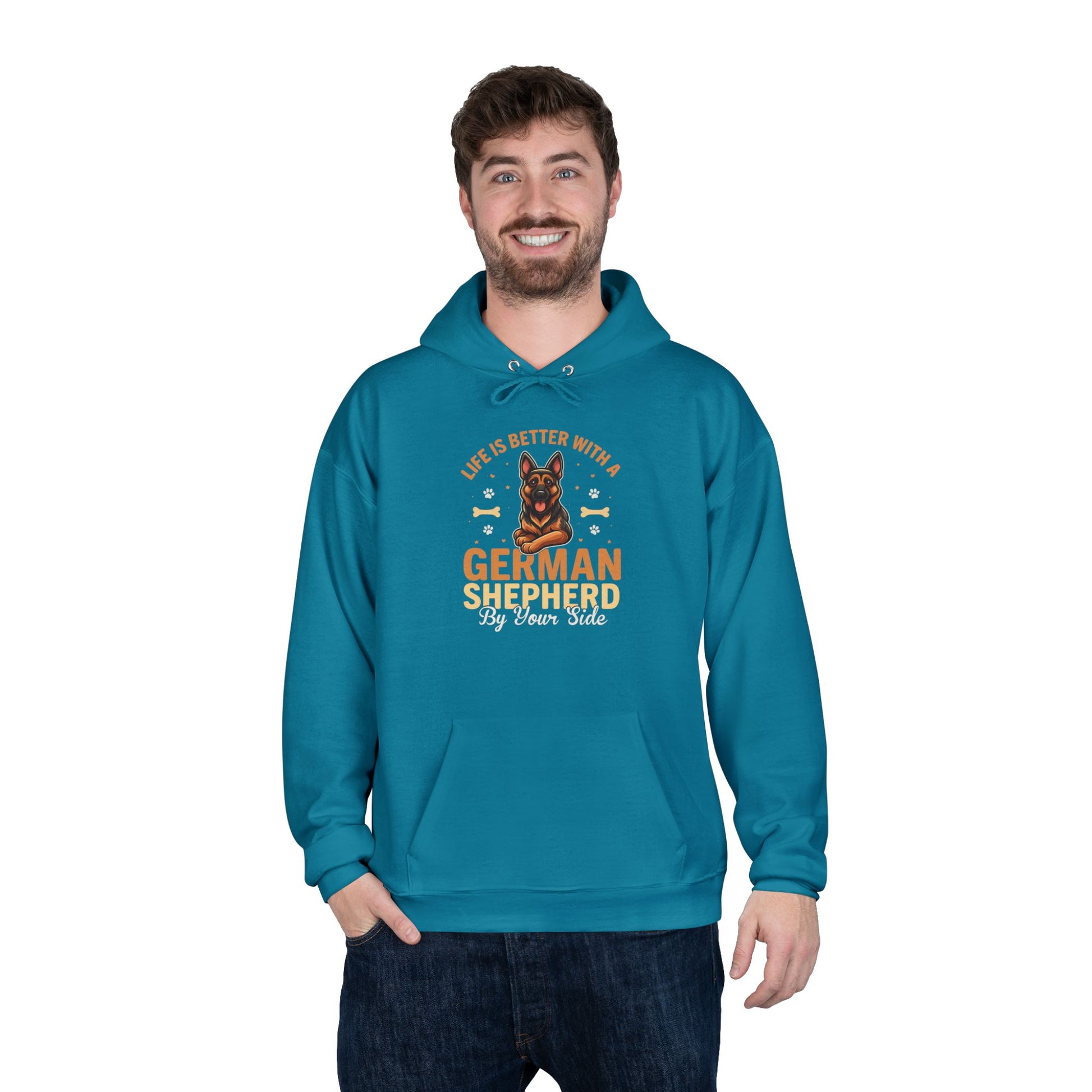 This Unisex EcoSmart® Pullover Hoodie Sweatshirt is perfect for those cozy days when comfort is key. With its soft fleece lining and regular fit, it envelops you in warmth, making it an ideal choice for lounging at home or heading out on a chilly evening. The adjustable hood allows for a customizable fit, while the spacious kangaroo pouch pocket keeps your hands warm and essentials close. Ideal for dog lovers, especially fans of German Shepherds, this hoodie is a must-have for anyone who wants to showcase their love for their furry friends. Perfect for casual outings, dog walks, or simply relaxing in style, it’s also a thoughtful gift for birthdays, holidays, or special occasions. Celebrate your bond with pets or brighten a friend’s day with this charming and comfortable addition to their wardrobe!