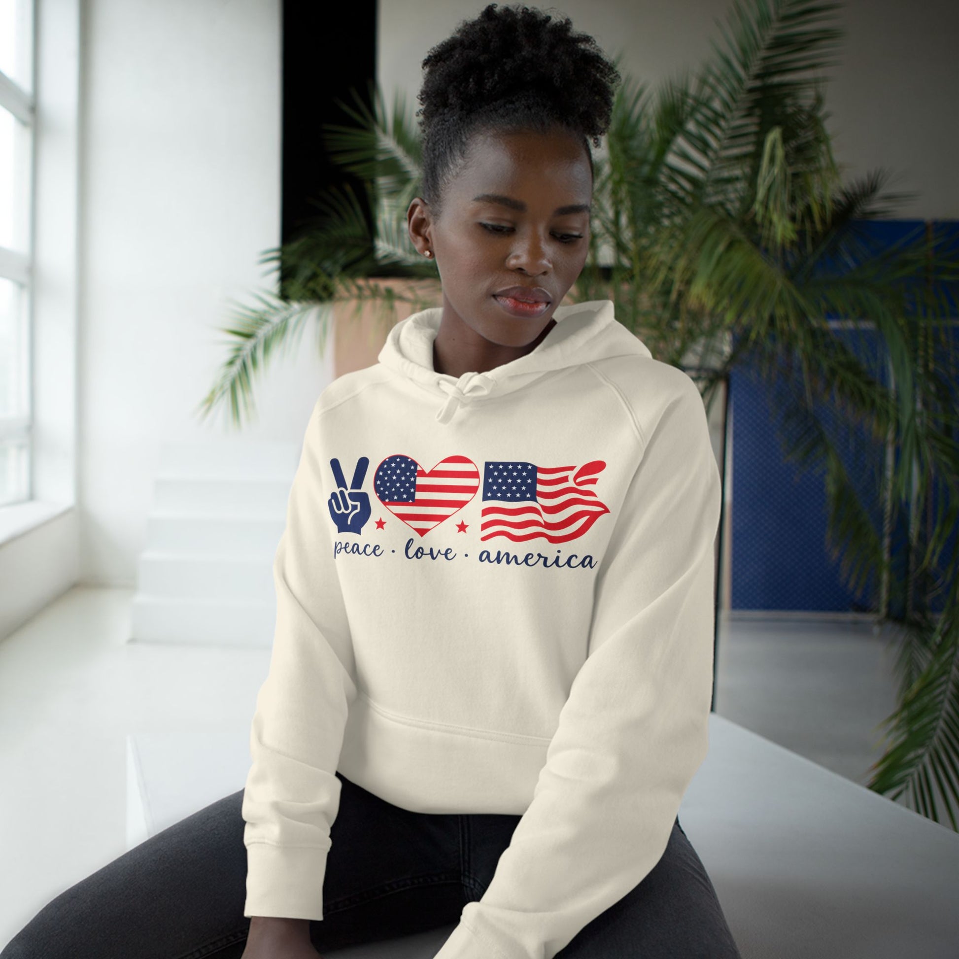 Patriotic Peace Hoodie, Unisex Pullover Sweatshirt, Love America Apparel, Cozy Gift for Fourth of July, Comfy Everyday Wear