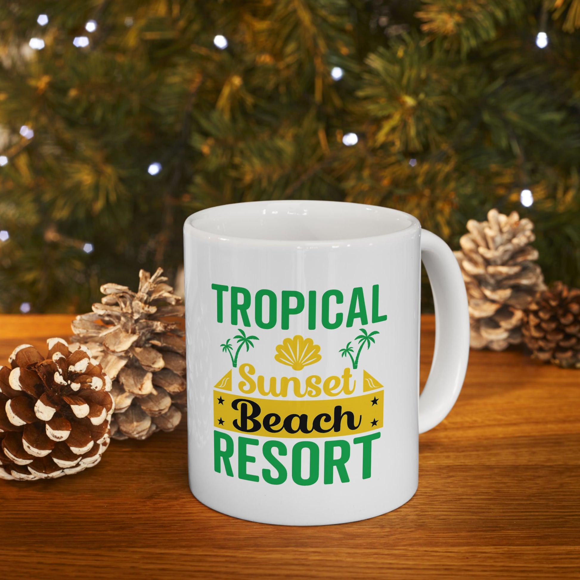 Tropical Escape Mug | Summer Beach Resort Coffee Cup for Beach Lovers | Relaxation Gift, Vacation Vibe, Fun Drinkware